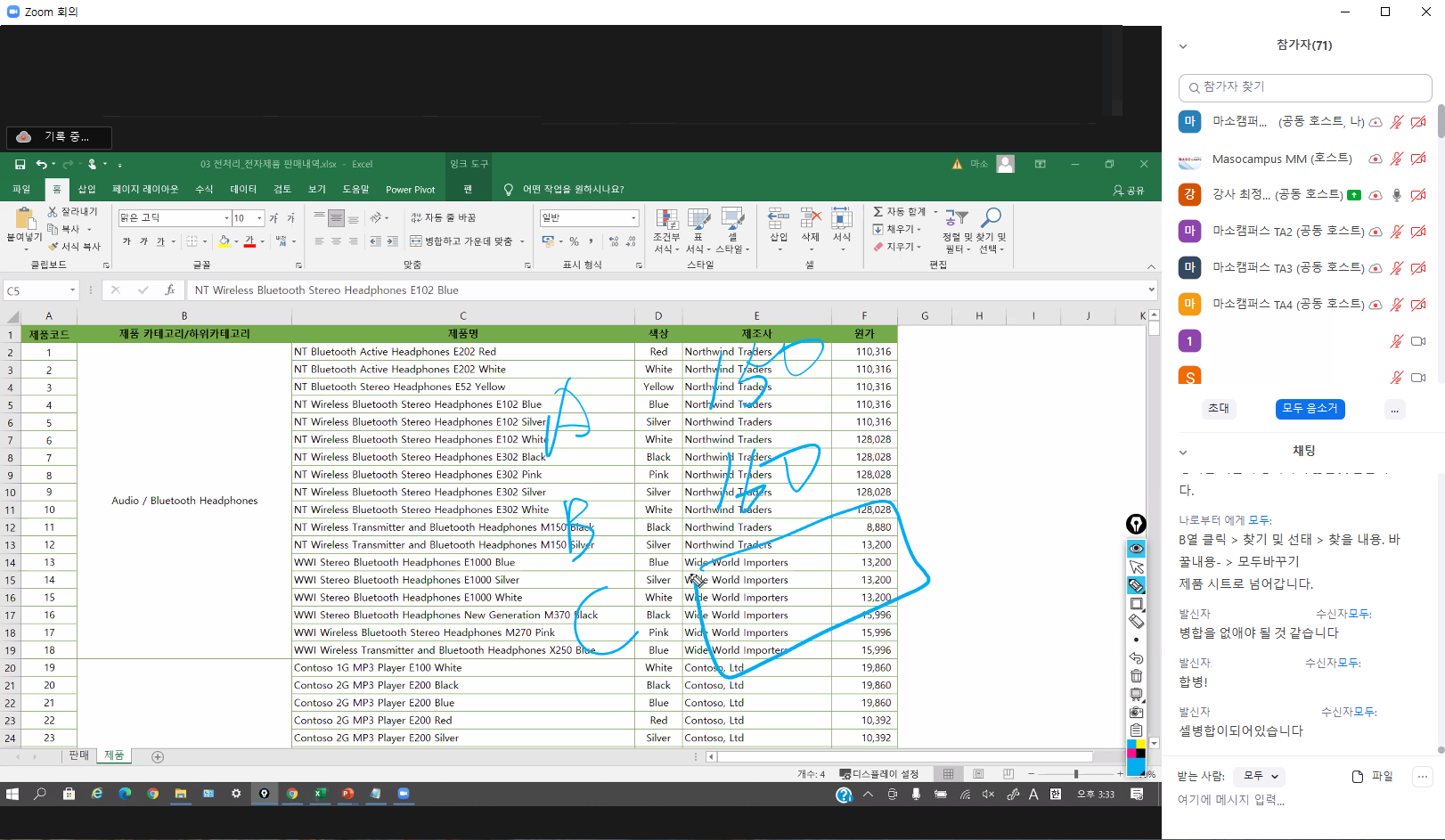 엑셀과 데이터 분석(중급) 1일차 (줌미팅 강의)