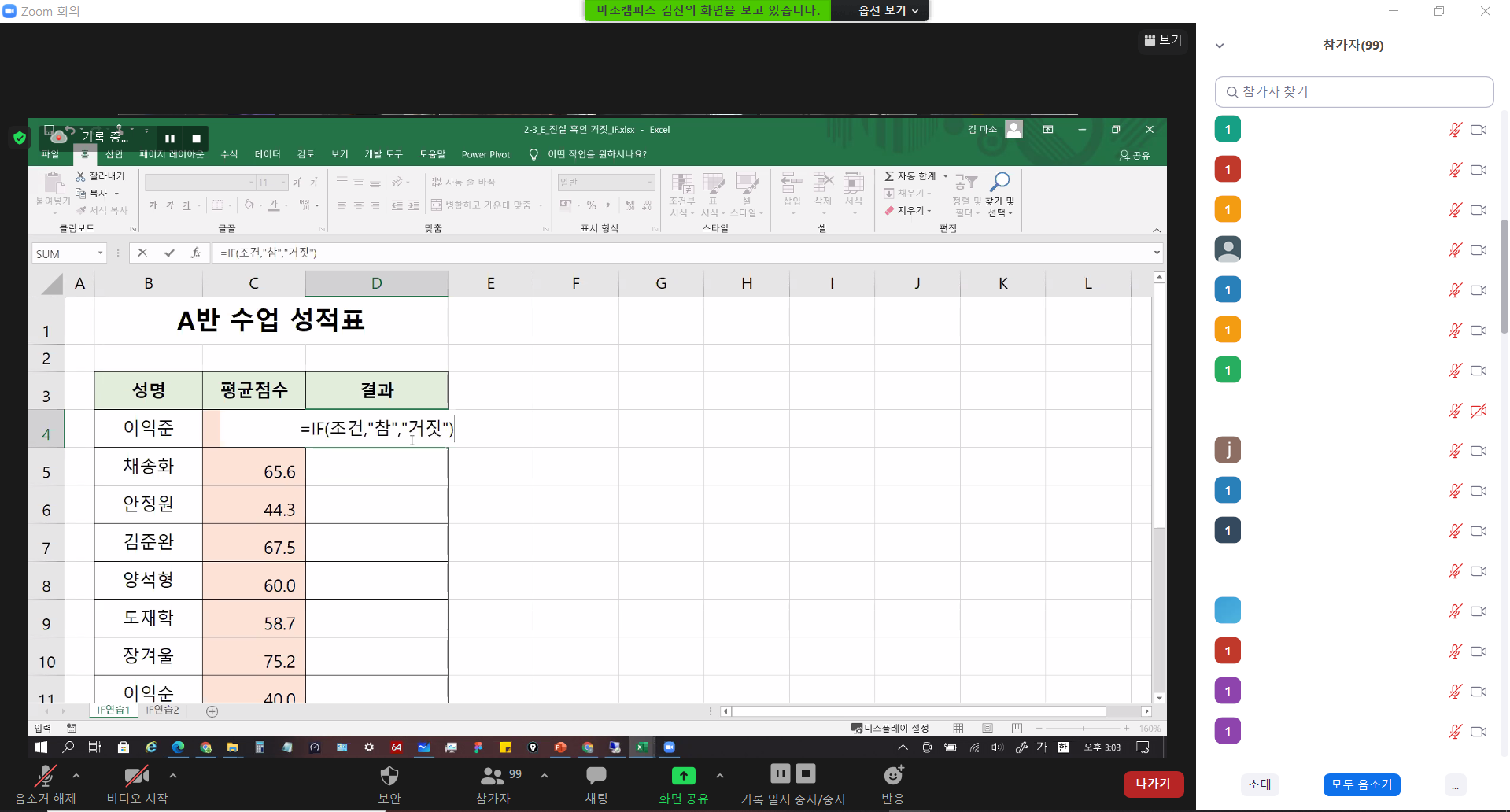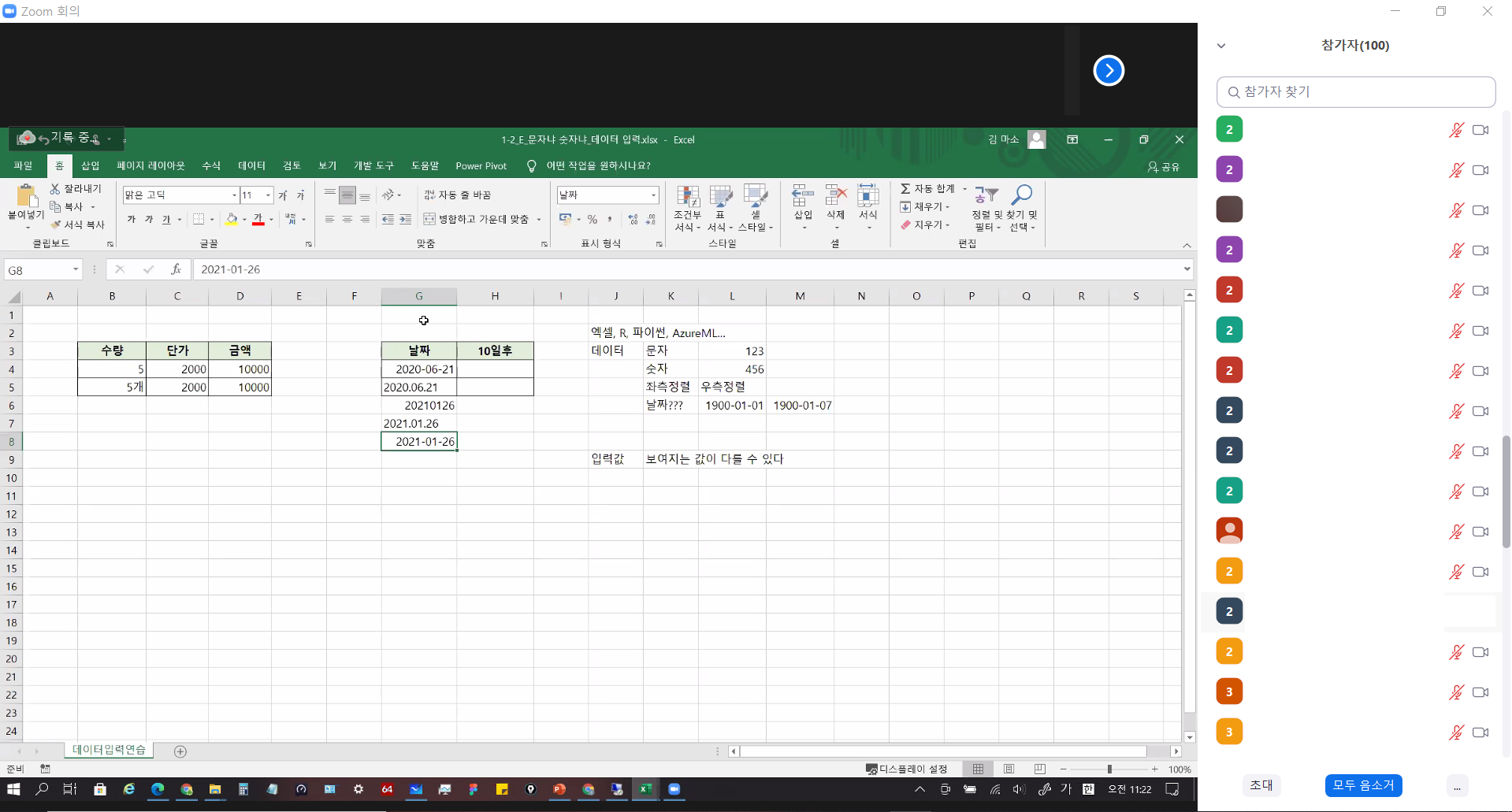 엑셀과 데이터 분석(초급) 1일차 (줌미팅 강의)