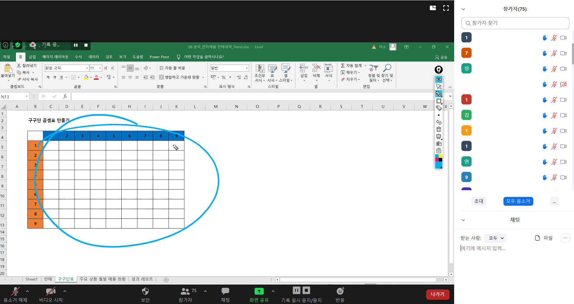 엑셀과 데이터 분석(중급) 2일차 (줌미팅 강의)