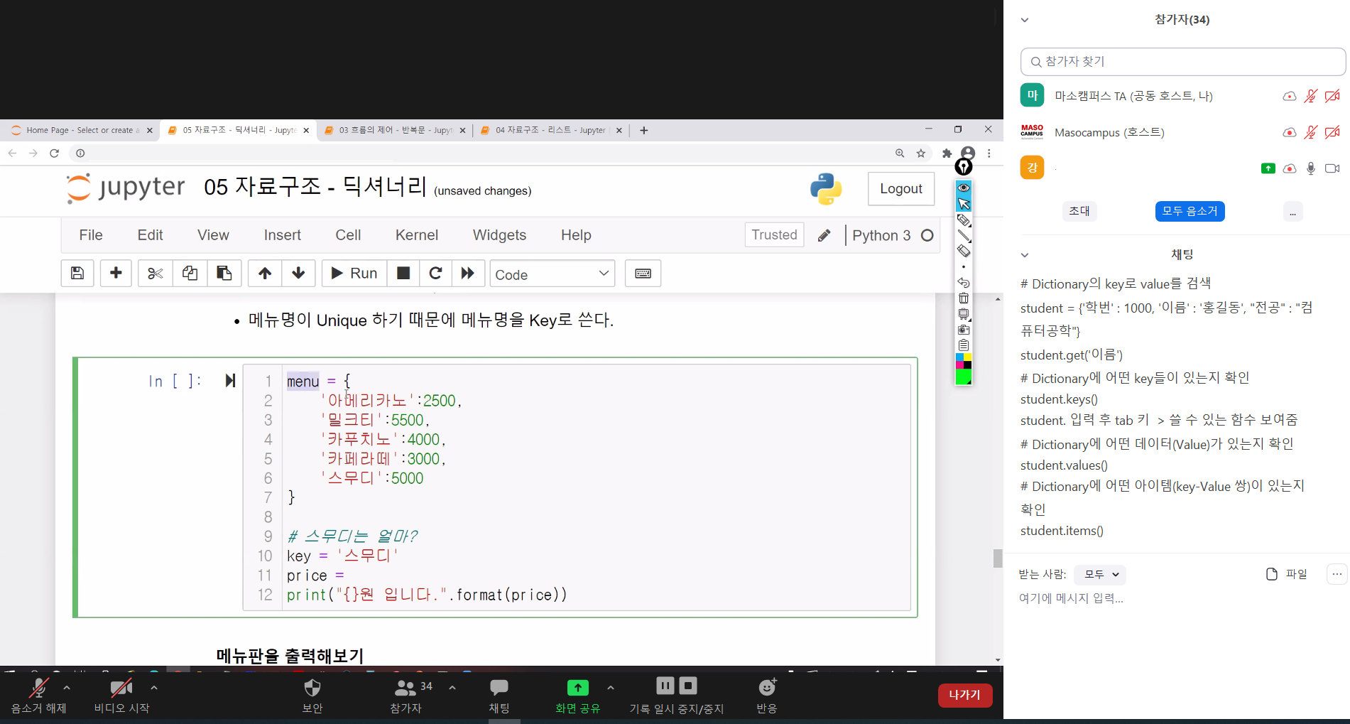 파이썬 입문 과정 2일차 (줌미팅 강의)