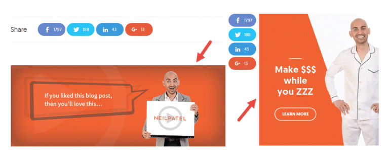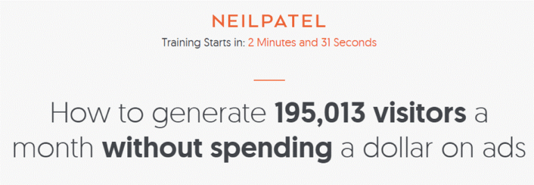 좋은 예로, Neil Patel은 웹 사이트에서 웨비나를 최대로 활용하는 방법을 알고 있습니다. 블로그를 시작하는 방법을 방문하여 사이드 바 또는 블로그 게시물의 하단에 있는 광고를 클릭하면, 더 많은 트래픽을 생성하는 방법에 대해 웨비나에 참석할 수 있는 페이지로 이동합니다.