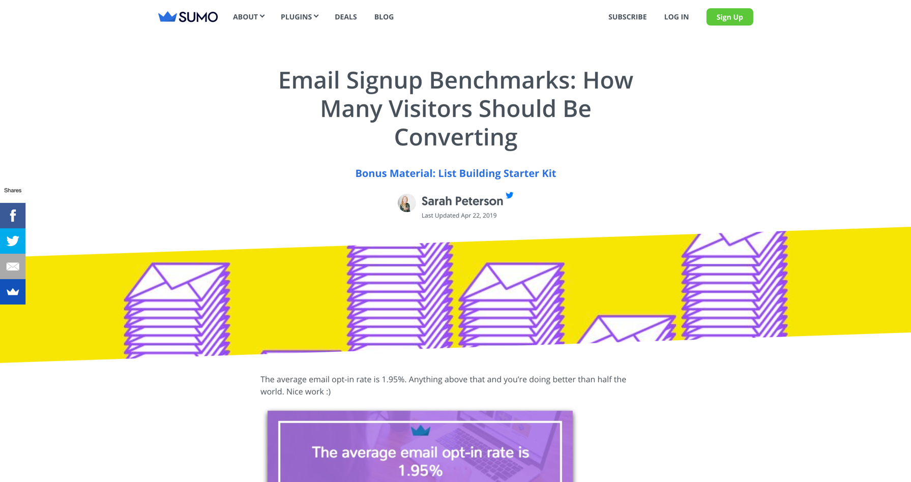 Sumo에 따르면, 평균 블로그는 1.95 %로 전환되므로 적어도 처음에는 해당 수치를 중심으로 전환율을 목표로 삼습니다.