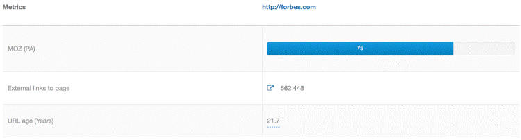 다음은 포브스(Forbes)의 페이지/도메인 권한을 예로 든 것입니다.