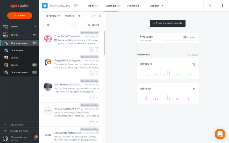 맞습니다. AgoraPulse는 무료는 아니지만 해시태그를 계속 확인하고 특정 해시태그를 사용하는 사람들과의 상호작용을 추적하기에 적합합니다.
