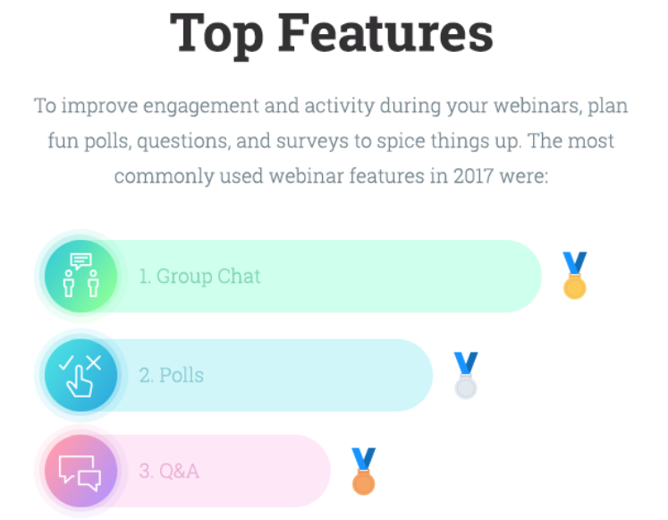 웹 세미나를 진행하는 동안 참석자를 대상으로 투표를 실시하십시오. 웹 세미나가 끝나면 투표와 결과를 미니 인포 그래픽으로 변환한 다음, 이미지를 소셜 미디어에 게시하여 이를 웹 세미나 다시 보기 랜딩 페이지로 다시 연결할 수 있습니다.