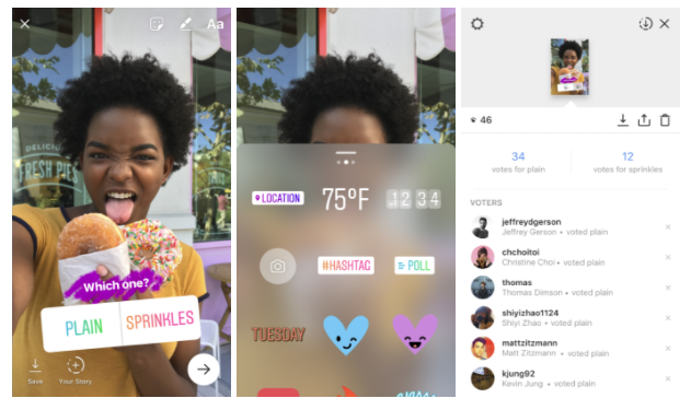 누군가 투표를 하면, 그들은 투표 결과를 볼 수 있습니다. 인스타그램 스토리에서는 ‘설문 조사 스티커 (Poll Sticker)‘를 사용하여 24시간 동안 두 개 옵션의 설문을 만들 수 있습니다.