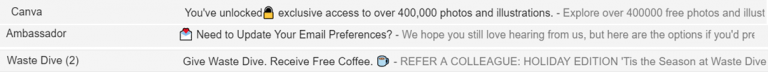 제목 길이에 40~70자 범위가 가장 적합하다고 주장하는 블로그 게시물을 자주 보지만, 사실 최적의 길이는 이메일 유형에 따라 다릅니다. 매일 이메일 뉴스 레터에 사용되는 제목을 분석해 보니 가끔은 더 많은 글자가 더 나은 경우도 있었습니다. 70자 이상의 제목란은 65자 이하의 제목란과 동일하거나 그 이상의 성과를 보였습니다. 따라서, 문자 제한 경고를 사무실 벽에 붙이는 대신 모든 문자를 세어 보는 데 초점을 맞추십시오(수행 방법에 대한 추가 팁이 아래에 있습니다). 예를 들어, 일일/주간 뉴스 레터를 발송할 때 독자가 이메일이 올 것을 예상하는 경우, 제목란에 ‘주간 뉴스 레터’를 포함하여 공간을 낭비하지 마십시오. 이번 주 호를 특별하게 만드는 것이 무엇인지 생각해 보세요. 독자들이 다른 곳에서는 얻을 수 없지만 뉴스레터에서 얻을 수 있는 것은 무엇입니까? 이것에 대해 궁금해하도록 하십시오.