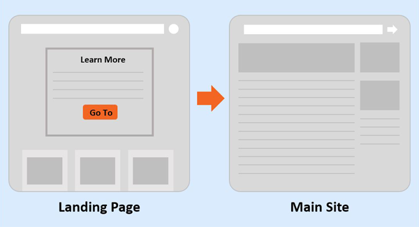 아래의 예에서는 일반적인 마케팅 랜딩 페이지 유형에 대해 이야기하겠습니다. 특히 링크나 메인 웹 사이트로 사용자를 재유도하는 행동 유도를 포함하는 경우, 모든 트래픽이 함께 추적되고 제대로 기여하는지 확인해야 합니다. 랜딩 페이지 트래픽을 올리기 위해 종종 더 많은 돈과 시간을 쓰기 때문에 이는 무척 중요합니다. 그 캠페인들과 트래픽 소스가 합당한 크레딧을 받을 수 있도록 확실히 해야 합니다.