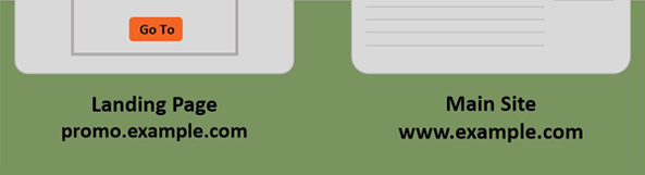 랜딩 페이지가 promo.example.com과 같은 하위 도메인에 있는 경우도 괜찮지만 조금 더 많은 작업이 필요합니다. 사용자가 랜딩 페이지와 메인 사이트간에 이동하는 경우 지침에 따라 하위 도메인 추적(Subdomain Tracking)이 올바르게 설정되어 있는지 확인해야 합니다.