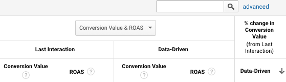 ‘모델 비교 도구’로 이동하여 전환 유형을 선택하고 다른 모델(예: Last-Interaction 모델 또는 Position-Based 모델)과 함께 데이터 기반 모델을 선택합니다.