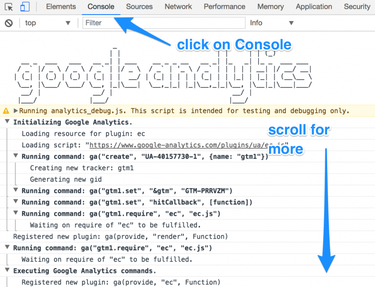 모든 것이 잘되면 (행운을 빕니다!) GA 디버그 콘솔은 다음과 같이 출력해야합니다 :