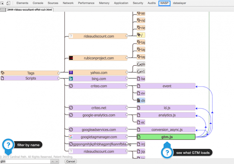 웹 사이트에 스크립트와 태그가 어떻게 배치되어 있는지를 보여주는 좀 더 향상된 도구입니다.