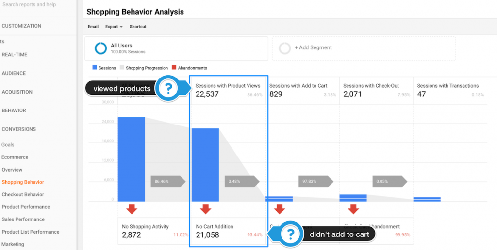 - 쇼핑 행동 보고서의 유입 경로 단계 인 제품 세부 정보 섹션에서 이야기했습니다.