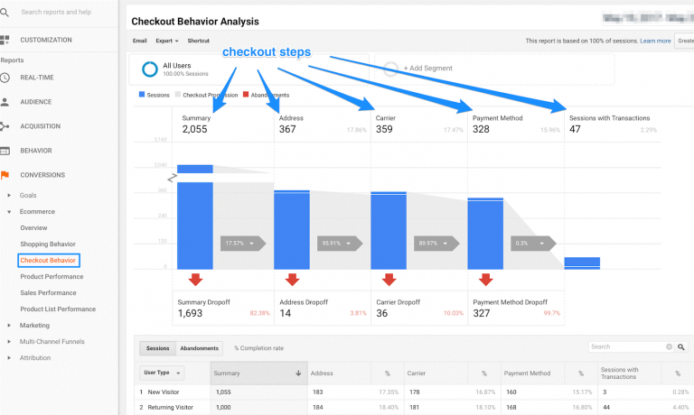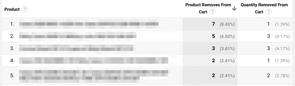 구글 애널리틱스에서 기본 보고서는 장바구니에서 삭제에 대한 세부 정보를 제공하지 않지만 맞춤 보고서를 만들어 데이터를 볼 수 있습니다.