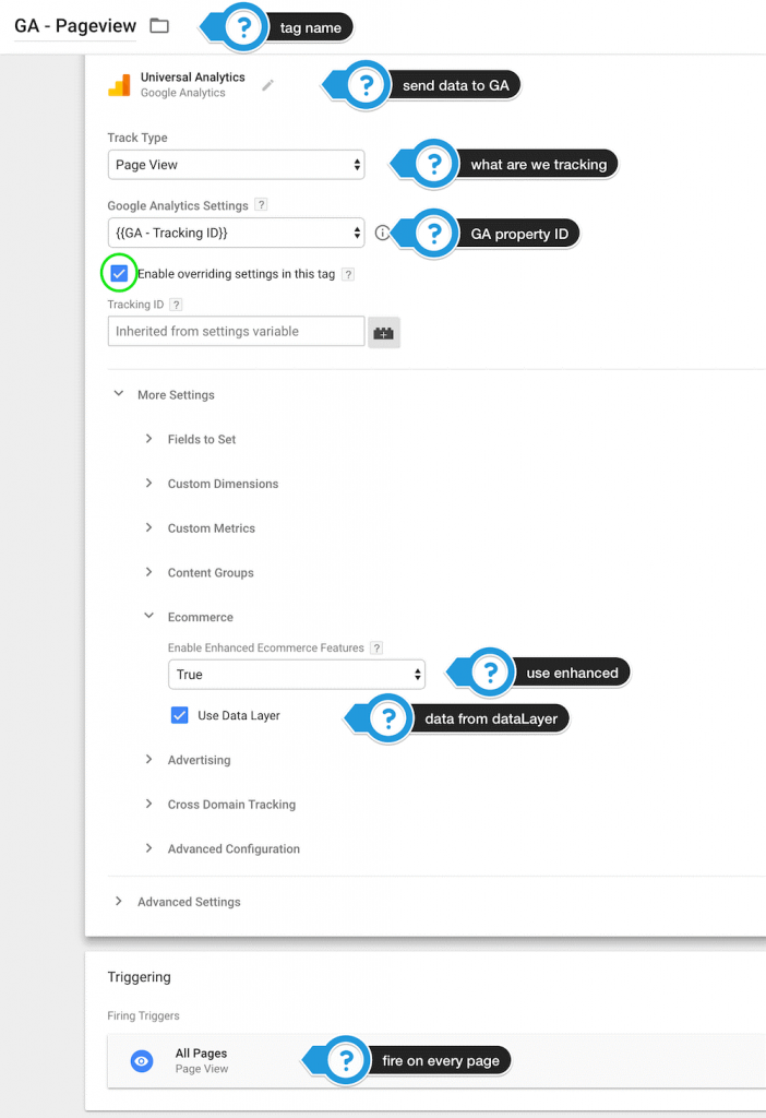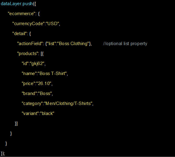 이러한 기능을 사용하려면 페이지가 로드 될 때 세부 정보를 dataLayer로 푸시해야 합니다.