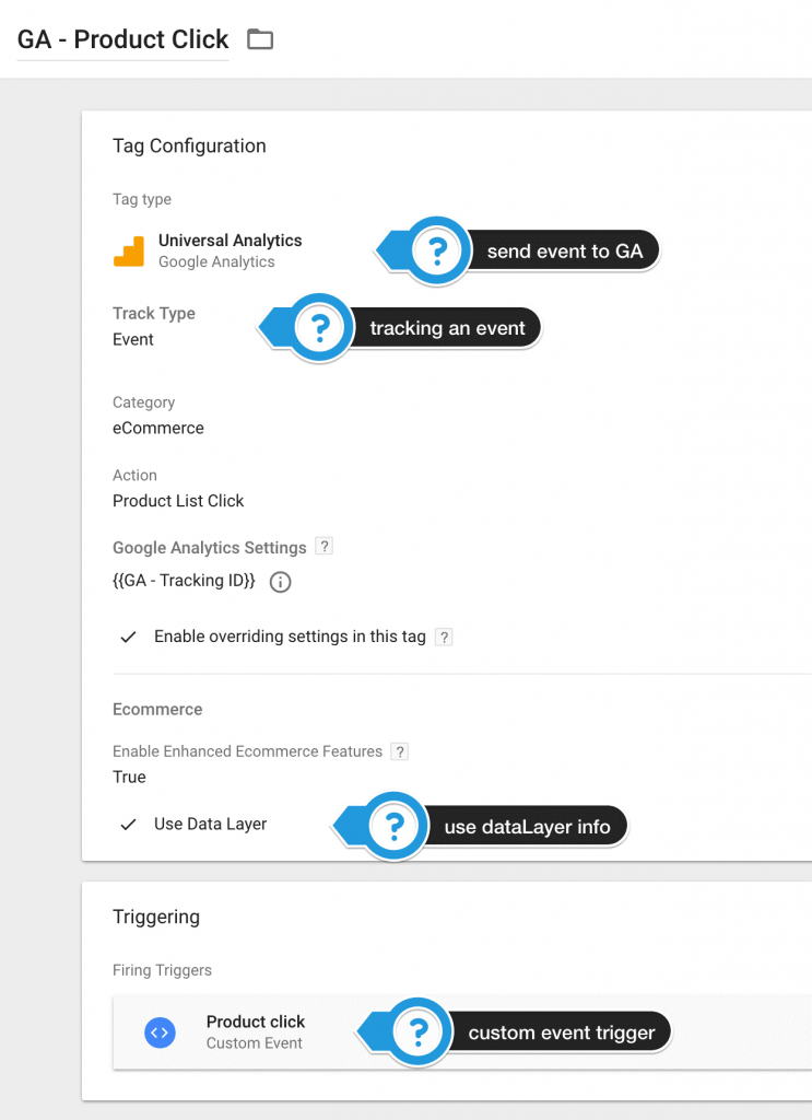 변수에 대한 모든 세부 정보를 얻은 후에 이벤트 데이터를 구글 애널리틱스에 보내려면, 동일한 트리거 및 태그 설정이 필요합니다.