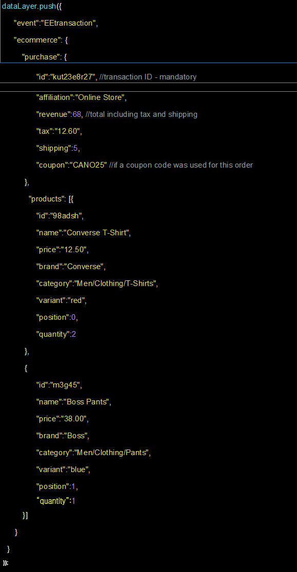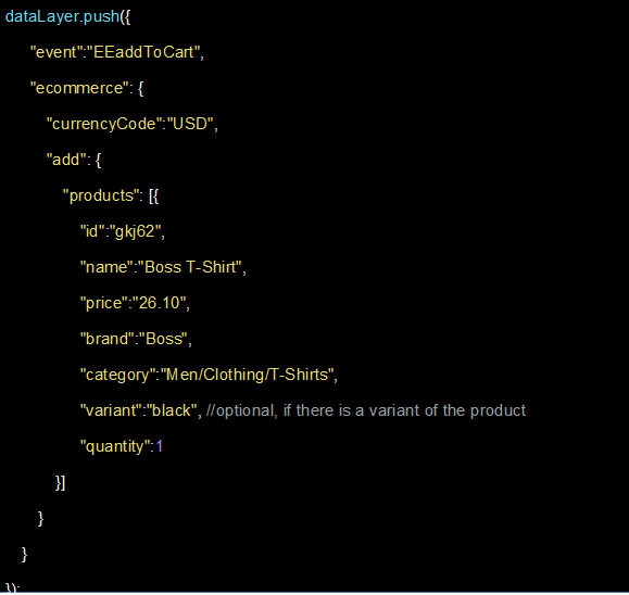 첫 번째 단계는 dataLayer에 향상된 전자 상거래 데이터를 채우는 것입니다.