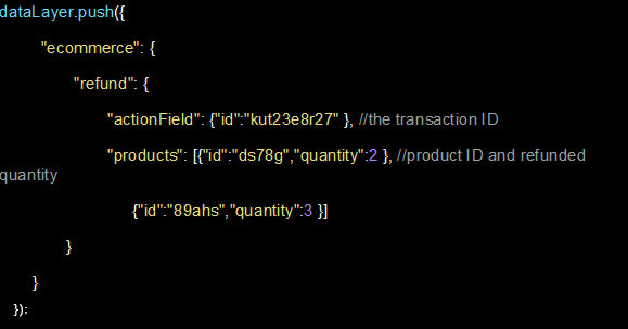 사용자가 웹 사이트에서 프로세스를 완료하여 제품을 자체적으로 환불할 수 있는 경우 dataLayer 접근 방식을 사용하여 제품을 추적 할 수 있습니다.