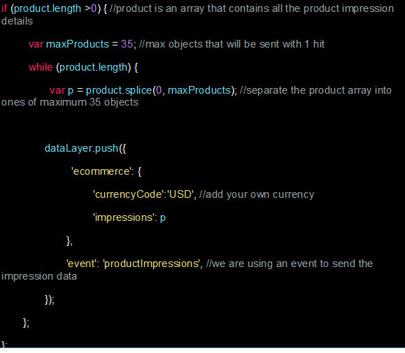 좋은 소식은 동일한 전자 상거래 개체에서 노출 수와 세부 정보를 결합 할 수 있다는 것입니다. 8Kb 제한을 염두에 두십시오!