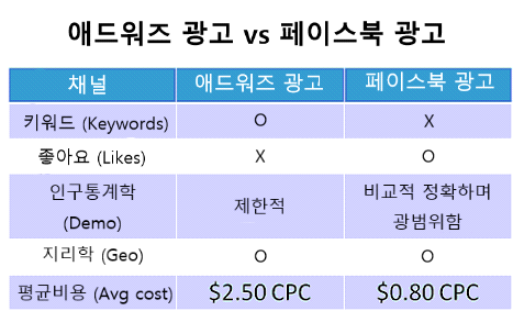 2. 페이스북 광고 vs 애드워즈 검색광고