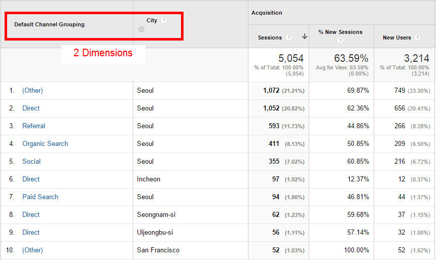 • “Dimensions”나 “Metrics”에 대한 필터링이 모두 가능함