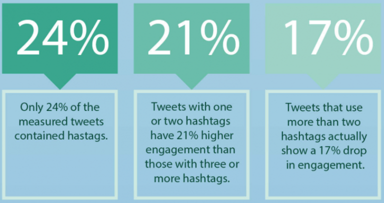 그러나 린치핀 SEO(Linchpin SEO)의 인포그래픽에서 볼 수 있듯이, 해시태그가 2개 이상인 트윗의 경우 참여도가 17%까지 감소하기 때문에 한 트윗 당 해시태그를 2개로 제한해야 합니다.