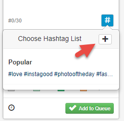 다음으로 ‘+’기호를 클릭하고 마지막으로 해시 태그를 추가한 다음 목록에 이름을 지정하고 저장합니다. 그것은 현재와 미래의 게시물 모두에 사용할 준비가 될 것입니다.
