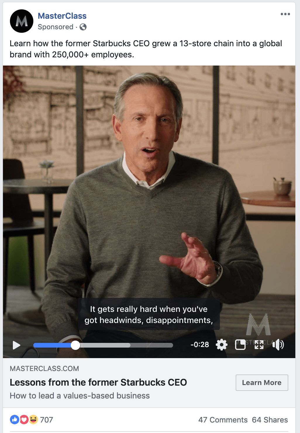 링크드인은 비주얼 및 마케팅 리소스와 관련하여 중간에 위치합니다. 스폰서 콘텐츠의 경우 멋진 그래픽 또는 짧은 비디오를 사용하여 메시지를 전달합니다. 청중이 더 전문적이기 때문에 페이스 북이나 인스타그램보다 더 세련된 것에 무게를 둘 것입니다.