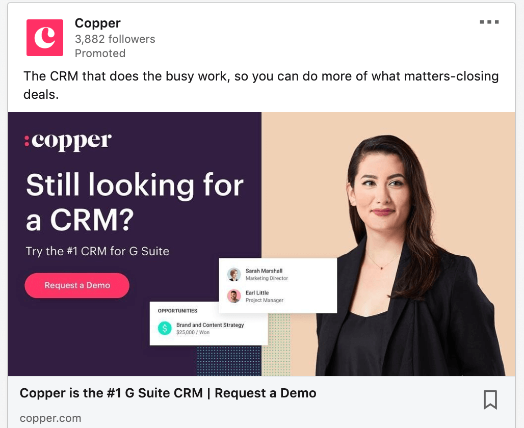 CRMs과 같은 B2B 서비스는 링크드인을 기본 광고 플랫폼으로 자주 사용합니다.
