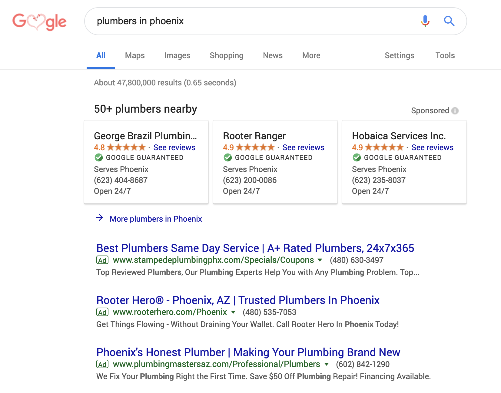 Google을 이용하는 사람들은 배관 서비스와 같은 것을 적극적으로 찾고 있습니다.