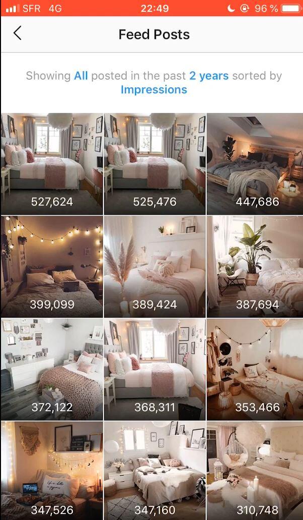 사용자들은 당신의 게시물을 여러 번 보는 경향이 있기 때문에, 당신의 도달 거리보다 항상 더 높은 인상을 줄 것입니다. 더 높은 인상은 또한 당신의 콘텐츠가 당신의 목표 청중들에게 반향을 일으키고 있다는 것을 보여줍니다.