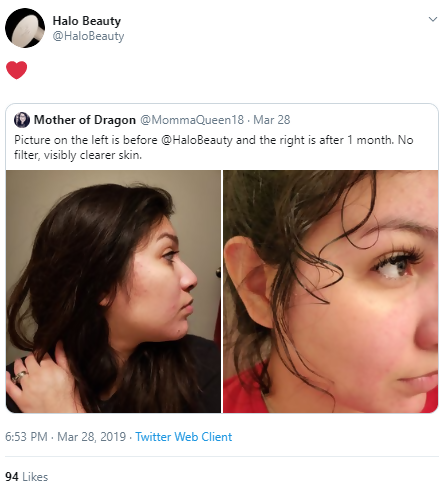 구독자들의 이야기를 공유하는 회사의 가장 좋은 예는 유튜브 유명 인플루언서인 Tati Westbrook 이 설립한 Halo Beauty라는 회사입니다. 이들은 리트윗을 통해 제품을 사용한 구독자의 이야기와 여정을 공유합니다.