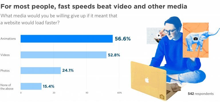 디자인 요소를 제거하면 방문자가 어떤 생각을 하게 될까? 흥미롭게도 대부분의 사람들이 애니메이션과 비디오에 관해 열광적이지는 않습니다. Page Speed 보고서에서 로드 시간을 줄이기 위해 방문자가 여러분의 페이지에서 제외하고 싶은 미디어를 표시하는 그래프를 확인하십시오.