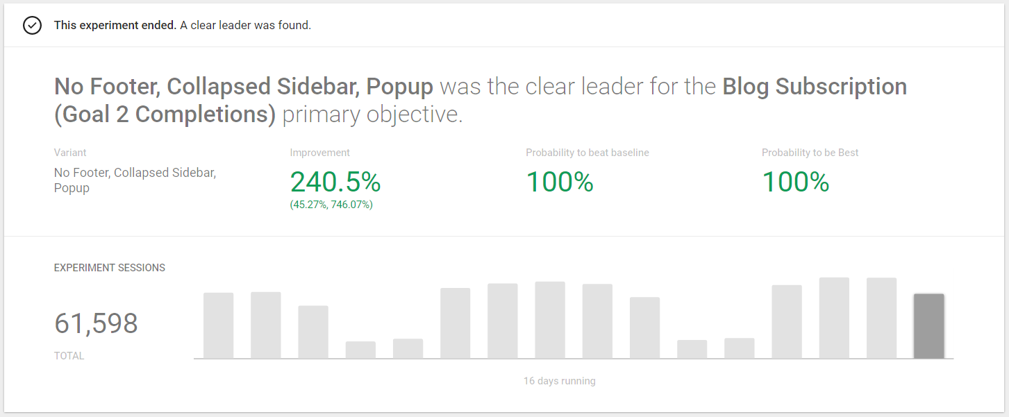 충분한 데이터가 수집되면, 구글은 어느 A/B 버전이 승자인지 결정합니다.