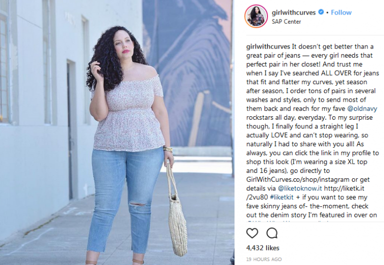 바로 Tanesha Awasthi(@girlwithcurves)가 Old Navy에서 했던 일입니다. 그녀는 이러한 고객들을 위해 맞춤 제작된 인스타그램 게시물의 형태로 콘텐츠를 생성합니다.
