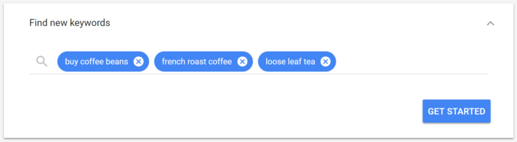 운이 좋게도, 애드워즈는 새로운 키워드 아이디어를 만들 수 있는 훌륭한 도구를 제공합니다. 키워드 플래너 도구를 사용하면 이미 브레인스토밍한(혹은 URL)키워드 목록을 입력할 수 있으며, 관련 단어 및 구문의 확장 목록을 불러낼 수 있습니다.