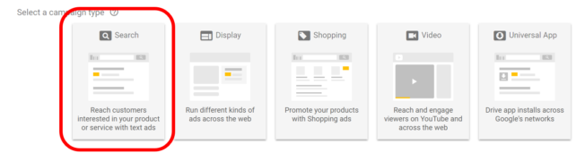 다음 창에서 캠페인 유형으로 ‘검색’을 선택하십시오.