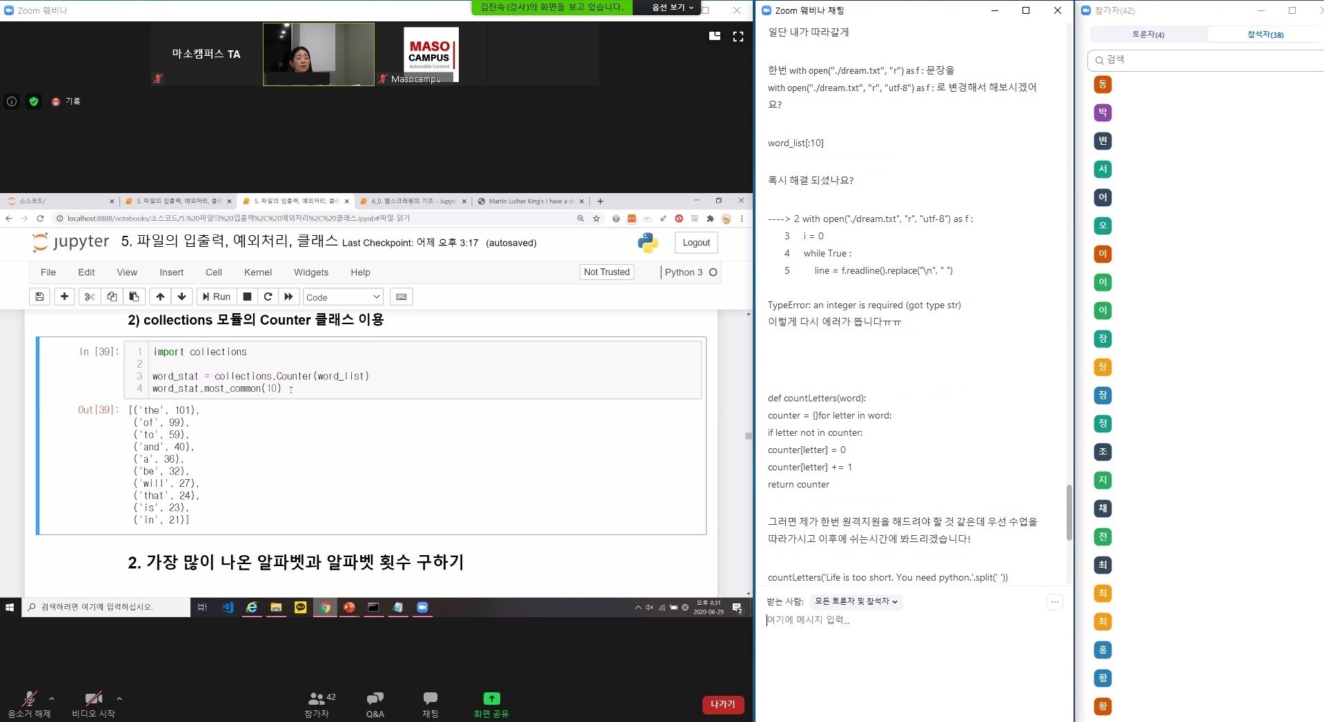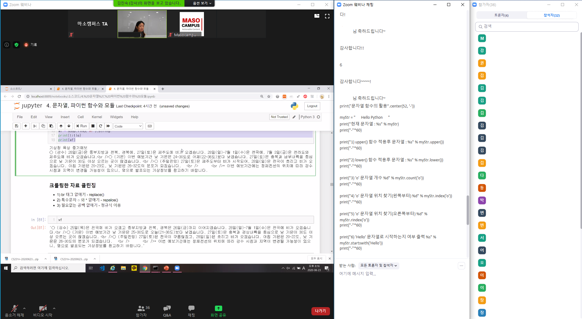 업무에 도움이되는 파이썬 입문 웨비나 수업입니다. 4일차에는 문자열과 문자열 내장함수 및 기상청 크롤링에 대해 강의를 진행하였습니다!