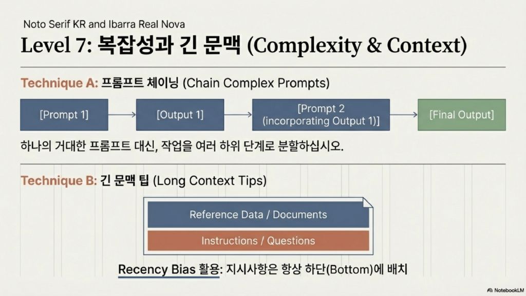 긴 문맥에서는 지시사항을 항상 아래에 두는 게 포인트예요.