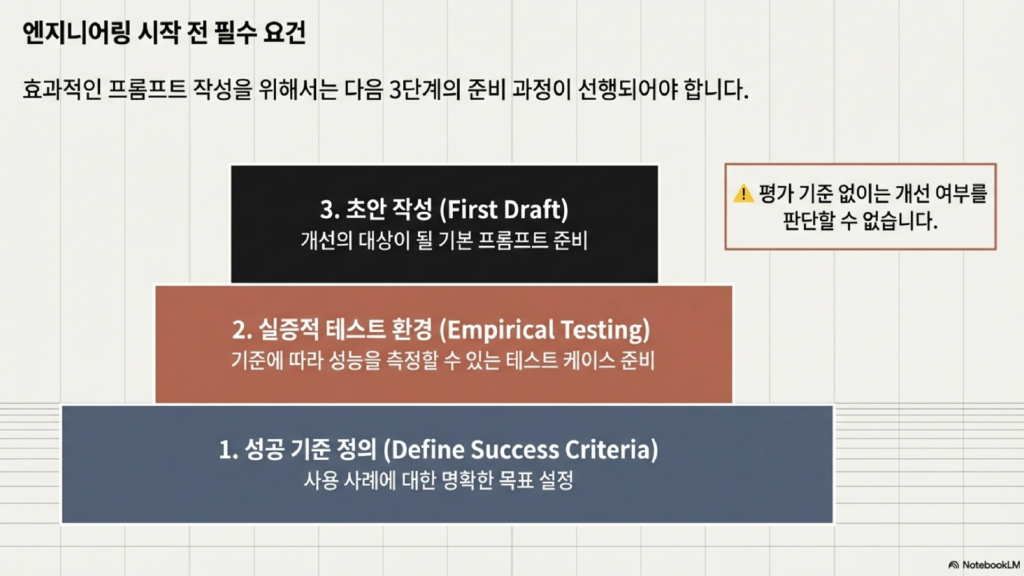 잘 되는 프롬프트는 측정 → 개선 과정을 반복해요.