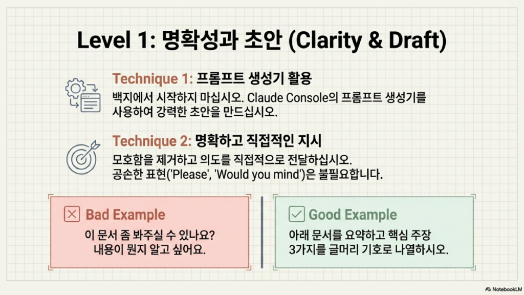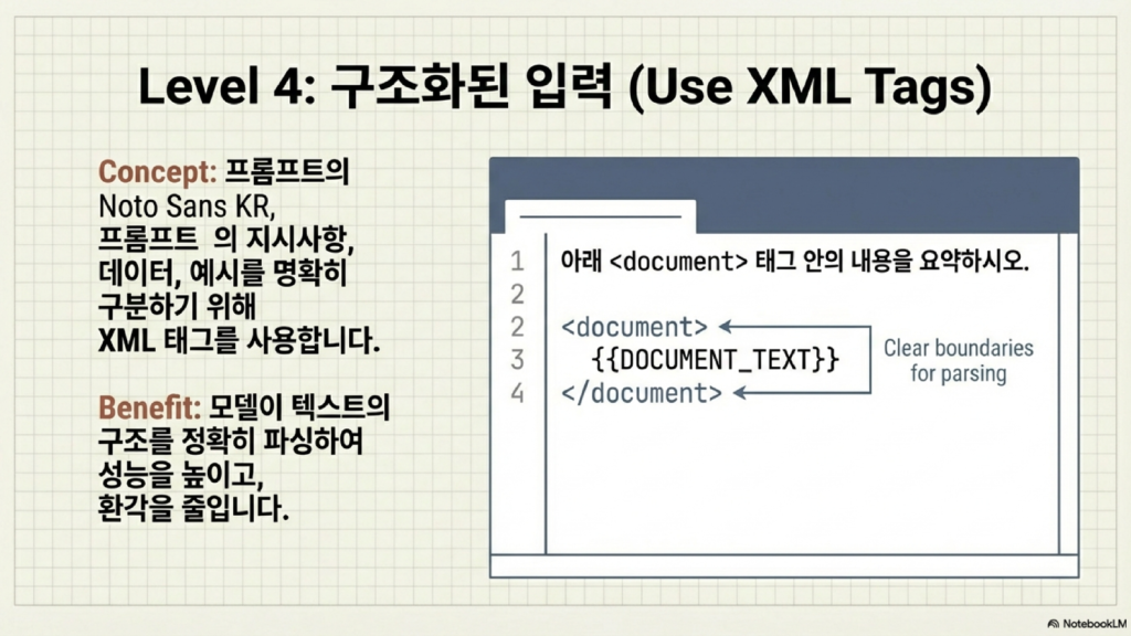 지시 / 데이터 / 예시를 명확히 분리해요.