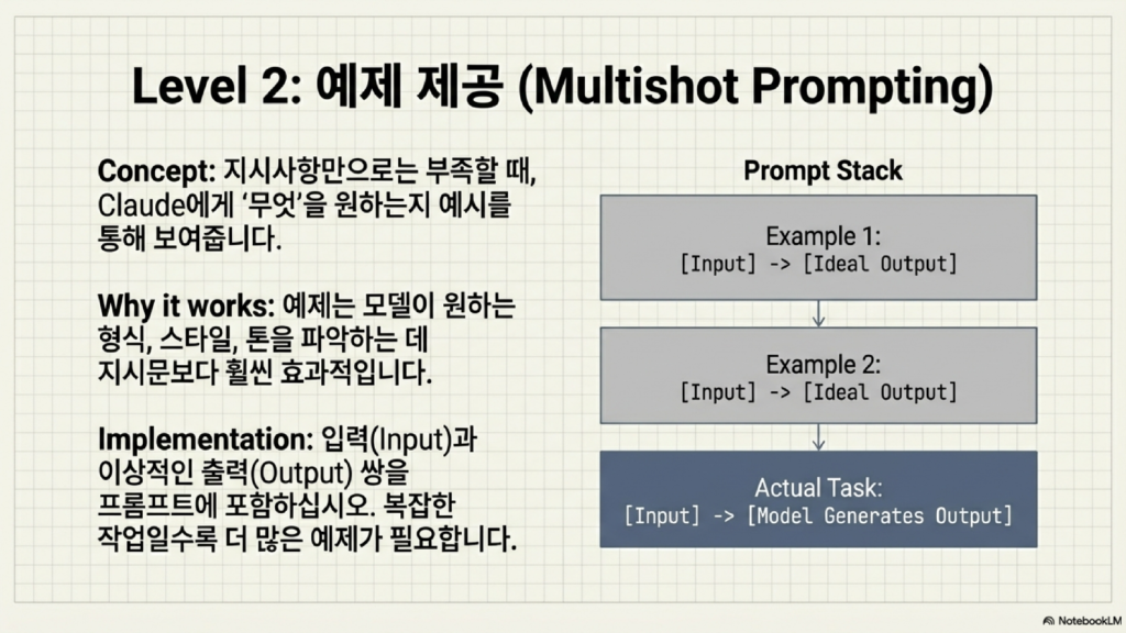 Claude는 예제를 통해 형식과 톤을 학습해요.