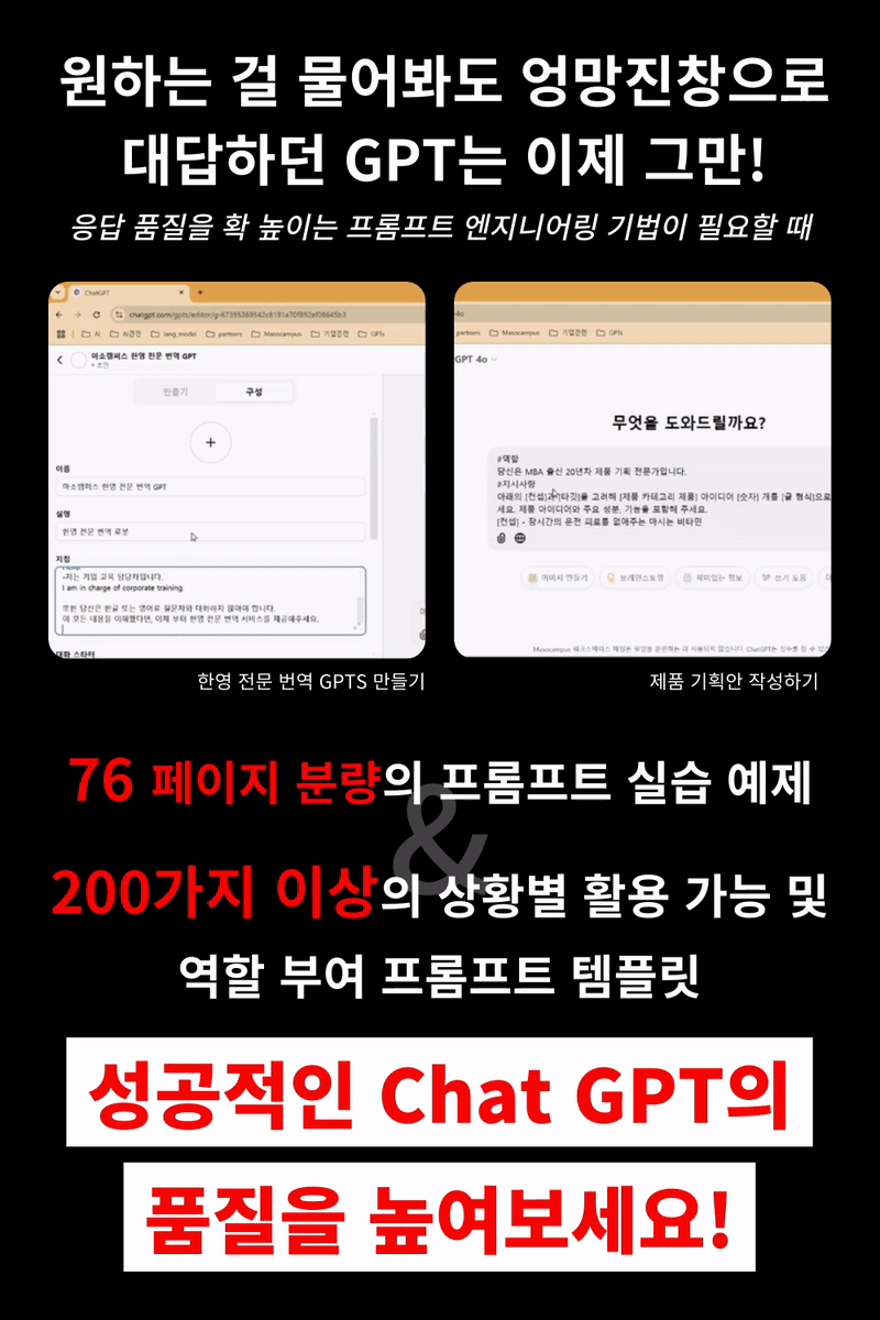 ChatGPT를 중심으로 실질적 성과를 만들어내는 다양한 프롬프트 엔지니어링 활용법을 제시하는 핵심 강의입니다.