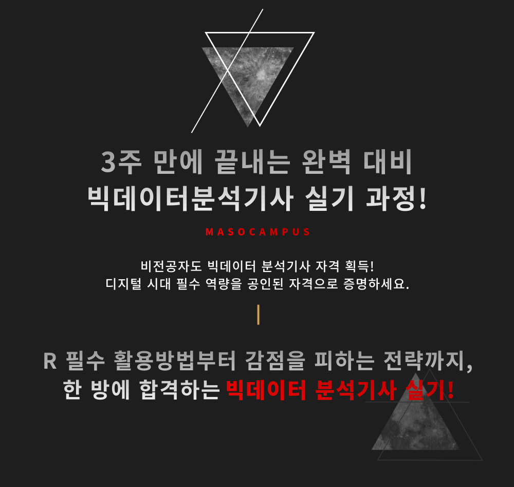 마소캠퍼스의 빅데이터 분석 실기 시험 응시 가이드부터 최종 마무리까지 시험에 필요한 모든 내용을 한번에 제공합니다.