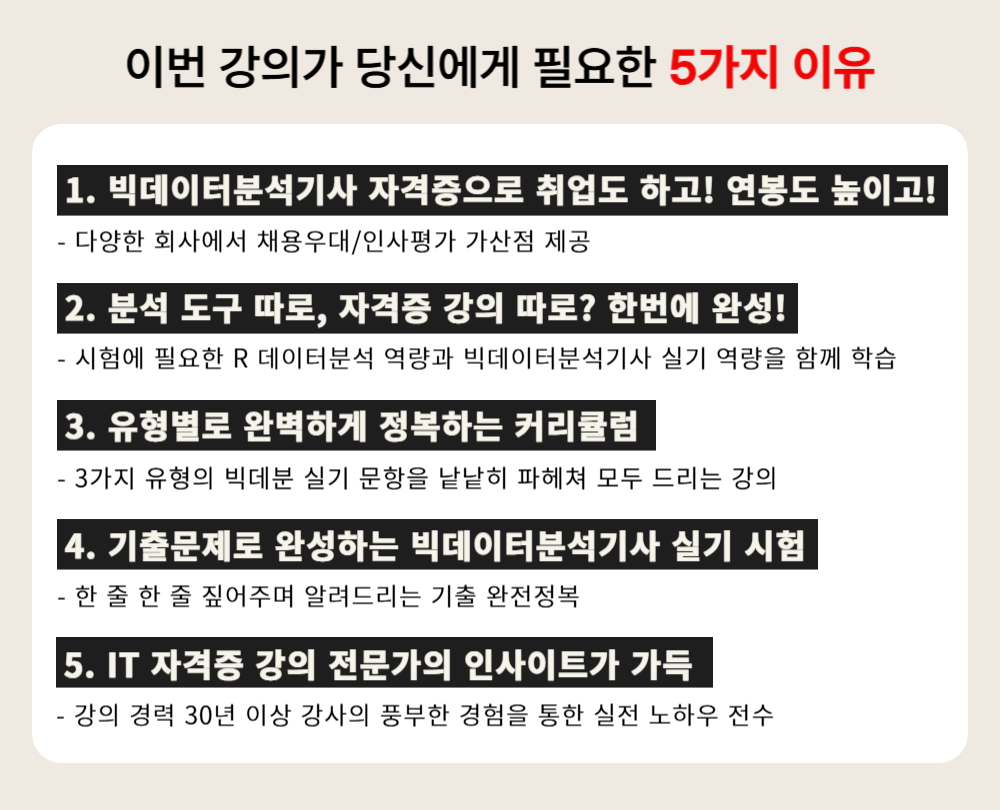R 프로그래밍 언어를 활용하여 실기 시험의 주요 유형을 체계적으로 학습하세요!