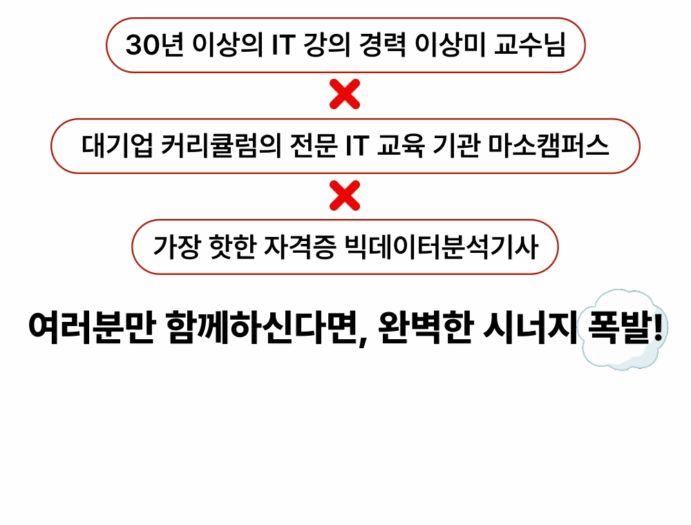 마소캠퍼스의 강의를 통해 빅데이터 분석의 모든 것을 마스터하고, 데이터 분석 전문가로서의 첫걸음을 내딛으세요.