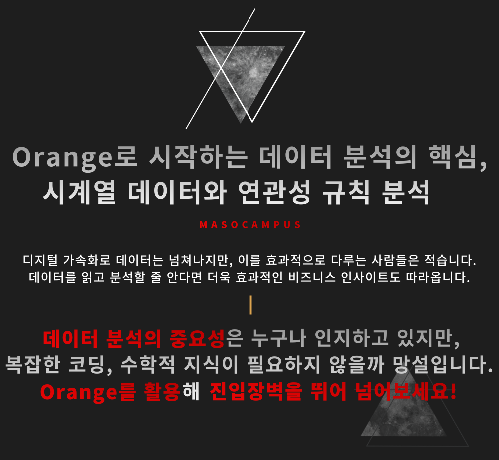 시계열 데이터와 연관 규칙의 개념과 예시, 그리고 관련된 기법들을 Orange로 더 간편하고 쉽게 가능합니다.