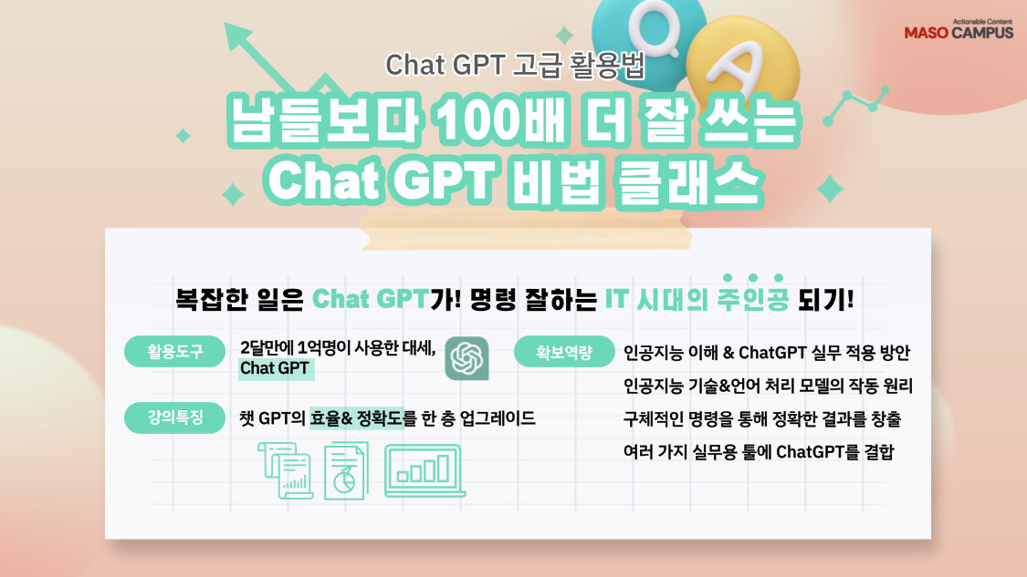 마소캠퍼스의 < Chat GPT 고급 활용법, 남들보다 100배 더 잘 쓰는 Chat GPT 비법 클래스> 강의를 듣고 나면,