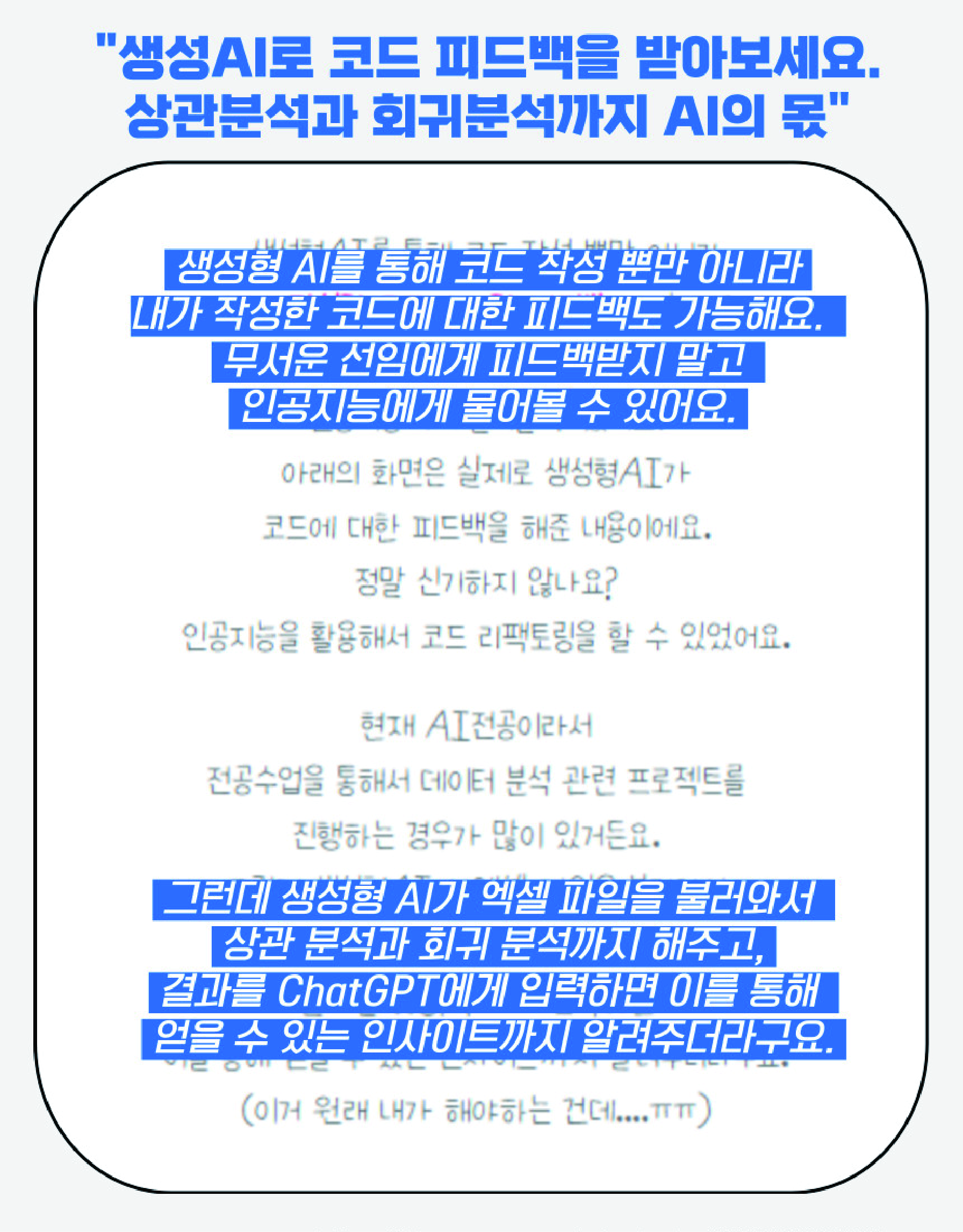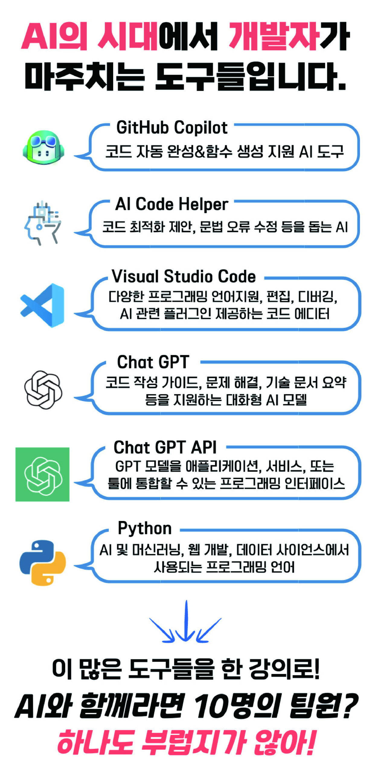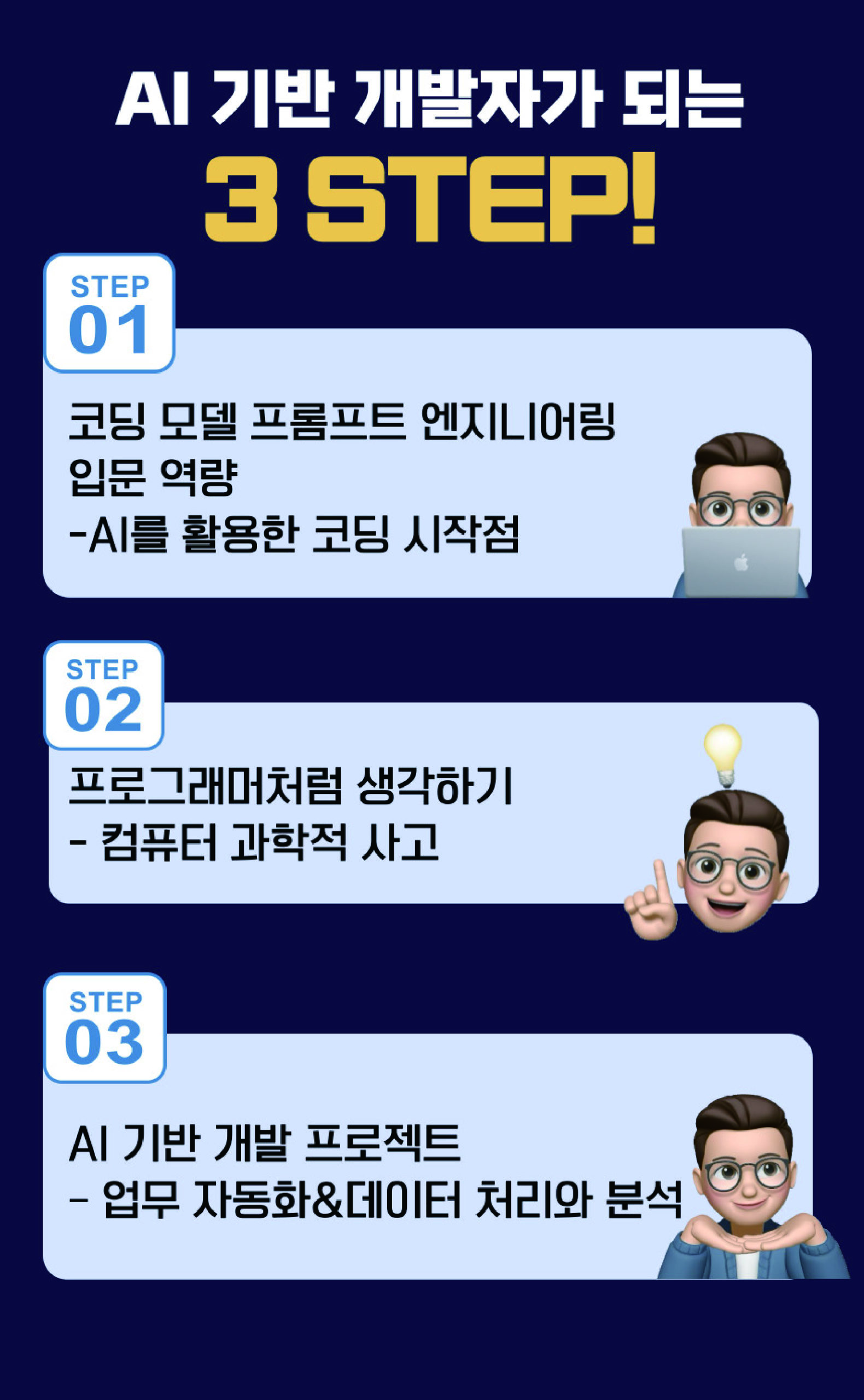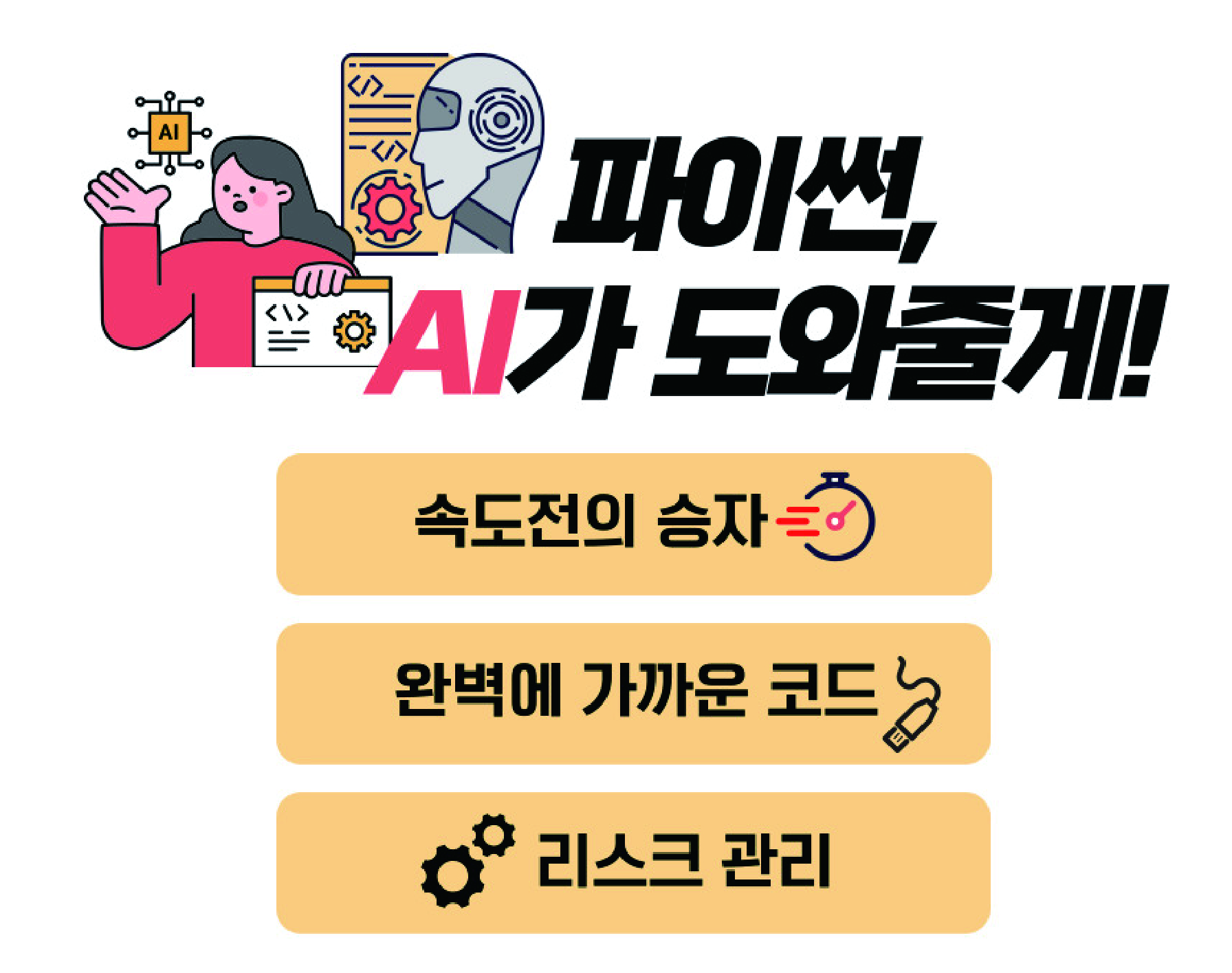 ▶ 수강자는 실무에 적용 가능한 프로그래밍 능력을 단기간 내에 향상시키며, AI 기술이해와 코딩 응용 방법 학습