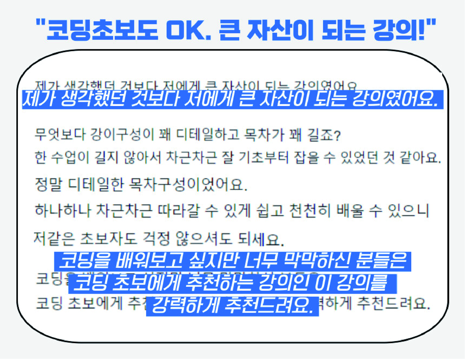 ▶ 코딩 사례 중심으로 핵심 역량 강화 지원, 피드백과 작업 결과로 포트폴리오 강화 기회 제공